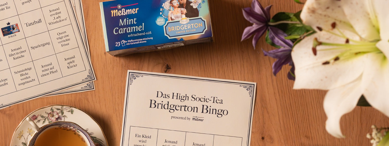 Sechs der beliebtesten Meßmer-Tees im stilechten Bridgerton-Gewand. Eine rare Design-Kollektion, die Fan-Herzen höherschlagen lässt und Euch die Tea-Love der Saison beschert.
