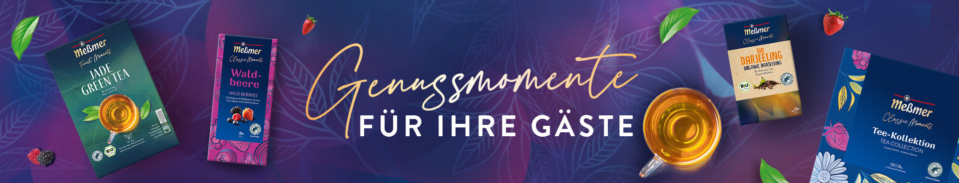 Schenke deinen Gästen genussvolle Momente der Entschleunigung im Trubel des Alltags – mit unserem Meßmer Sortiment für den Außer-Haus-Bereich.